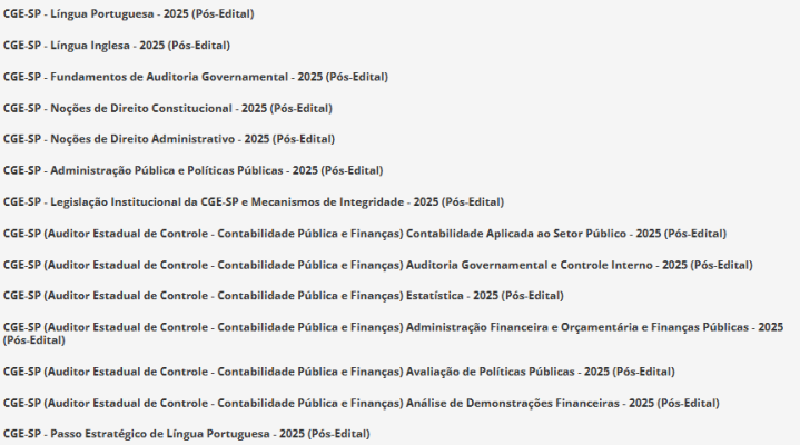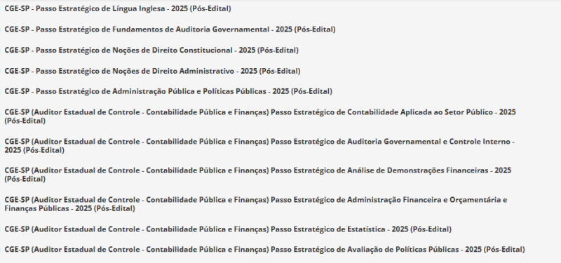 CGE SP (Auditor Estadual de Controle – Contabilidade Pública e Finanças + Passo) Pós Edital – Estratégia 2025