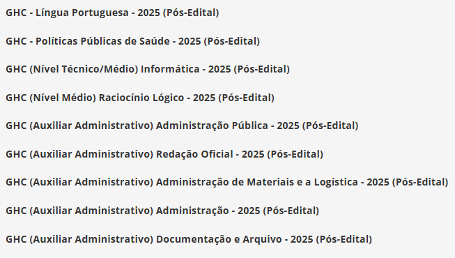 GHC (Auxiliar Administrativo) Pacote – 2025 (Pós-Edital)